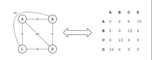 This fact can be further translated to a 2x2 matrix which represents the distance between the two nodes. In this instance, we’ll refer to A as the office, which is node zero. Note that the matrix is symmetrical which means that the distance from A to B is the same as the distance from B to A. Further evidence of this is illustrated in the diagonal line of symmetry in the matrix.